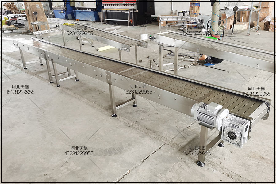 鏈板輸送機(jī)歡迎來(lái)電定制河北天德雞胸肉油炸流水線鏈板輸送機(jī):15231229955 網(wǎng)址:http://www.eudy.cn/
