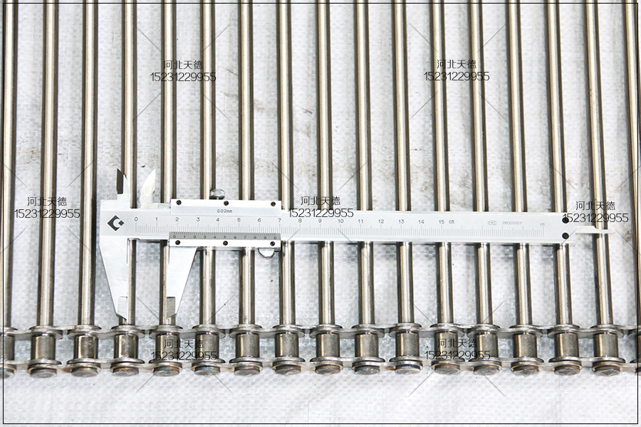 蛋糕卷加工設備金屬網帶可以采用鏈桿輸送帶,總寬度580mm,材質不銹鋼304網帶,鏈條采用節距25.4mm,串桿使用6mm的,每兩節鏈條里面都安裝一根串桿,透氣性能非常好的鏈條金屬網帶,串桿中間的孔隙為15mm,不會出現掉落產品的情況,鏈桿輸送帶兩側采用氬弧焊固定的,因此比較費事,這樣做的在以后需要更換中間串桿的時候有些不方便,成本也會比使用穿銷的輸送帶高。